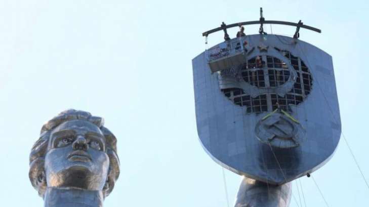 30 липня в Києві розпочався процес демонтажу радянського герба з монументу "Батьківщина-мати". Планується, що до Дня Незалежності України герб СРСР, який включає в себе символи - зірку, серп і молот, буде замінений на український Тризуб на скульптурі.