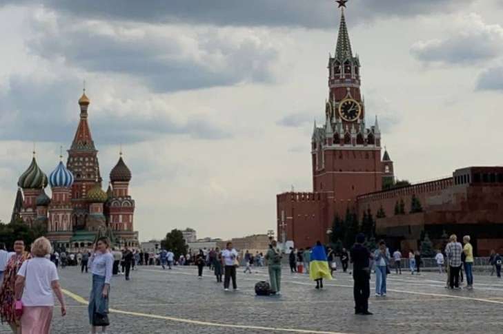 У москві затримали жінку, яка загорнулася у прапор України біля кремля