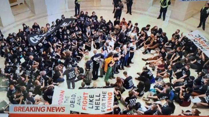 Пропалестинские активисты ворвались в американский Капитолий и провели акцию протеста.