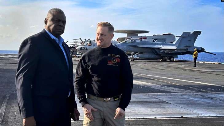 Фото: Ллойд Остин и командир корабля ВМС США Джеральд/ apnews.com