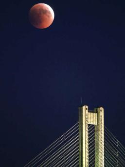 «Кровавая» луна над Московским мостом в Киеве