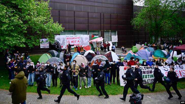 Во вторник, 7 мая, полиция разогнала аналогичную студенческую демонстрацию в Амстердаме.