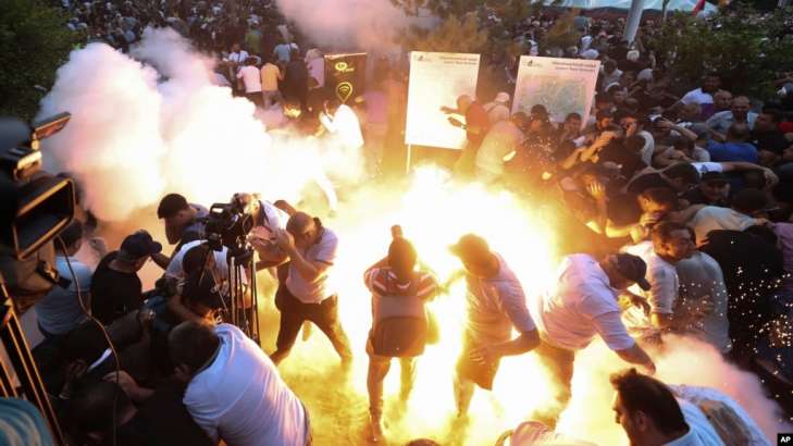 Фото: Полицейская светошумовая граната взорвалась во время митинга против премьер-министра Никола Пашиняна в Ереване, Армения