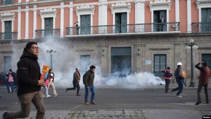 Ранее в тот же день военные части под руководством генерала Зуниги, недавно отстраненного от командования, собрались на центральной площади Пласа-Мурильо, где находятся президентский дворец и Конгресс. Очевидец, общавшийся с Reuters, видел, как бронетранспортер пробил дверь президентского дворца, и солдаты ворвались внутрь.