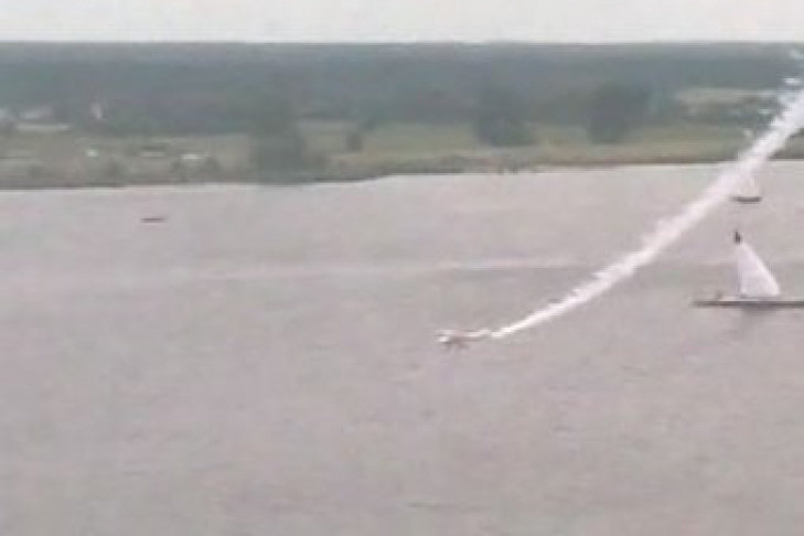 Биплан выполнял в воздухе фигуры высшего пилотажа, когда через несколько минут полёта он неожиданно загорелся и рухнул в реку на глазах у тысяч зрителей.
