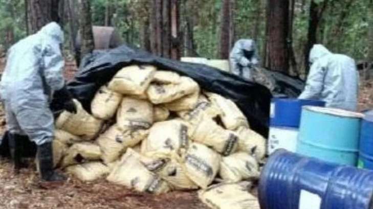Були конфісковані також бочки загальним обсягом 8800 літрів, у яких були хімічні компоненти, необхідні для виробництва наркотиків, повідомляє Associated Press.