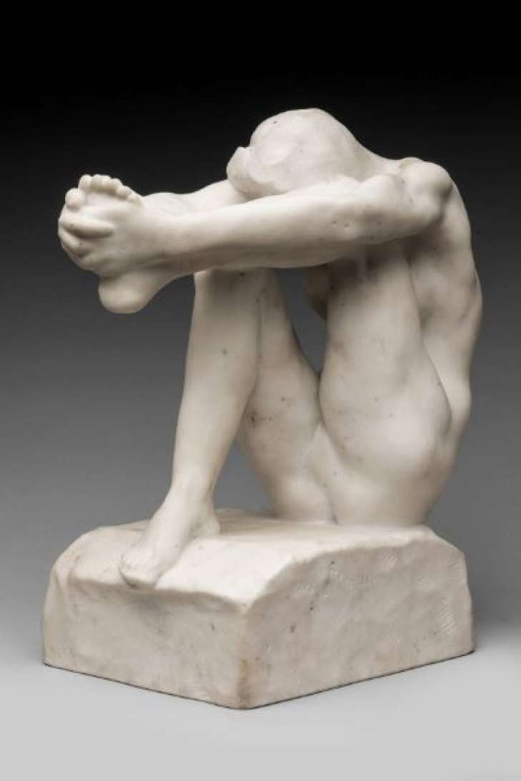 Мармурова фігурка оголеної жінки, що сидить, була зроблена Роденом у 1892-1893 роках під час роботи над скульптурною групою "Брама пекла".