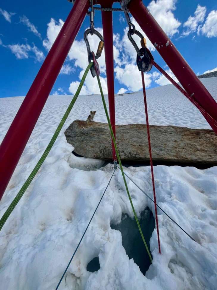 Пес залишився біля краю тріщини, не зрушивши з місця, поки тривав порятунок. Чоловікові вдалося подати сигнал тривоги через рацію, але точне місцезнаходження вказати не вдалося.