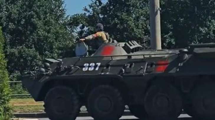 У білоруському Гомелі, що поблизу кордону з Україною, помітили щонайменше два бронетранспортери з незвичними червоними позначками. Про це повідомив білоруський опозиційний Telegram-канал Belamova.