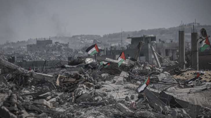 Фото: Палестинські прапори серед руїн у секторі Гази