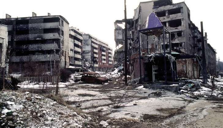 Фото: Повреждены многоквартирные дома после осады Сараево /wikipedia.org