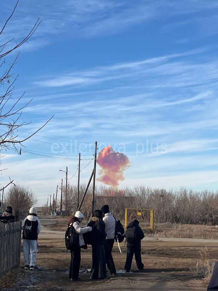 Над містом Ясний в Оренбурзькій області, де розташована однойменна пускова база, піднялася хмара фіолетового диму. Перед цим було чути вибух", — пише паблік.