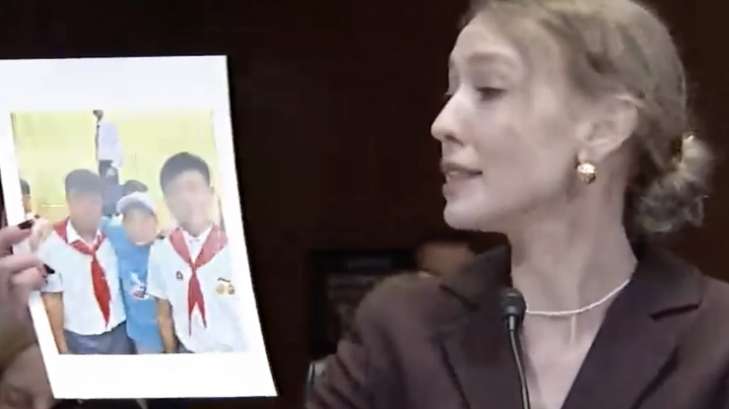 Рашевська продемонструвала фотографії 12-річного Міші з окупованої частини Донеччини та 16-річної Лізи з тимчасово захопленого Сімферополя, яких відправили до табору в Північній Кореї — за дев’ять тисяч кілометрів від дому.
