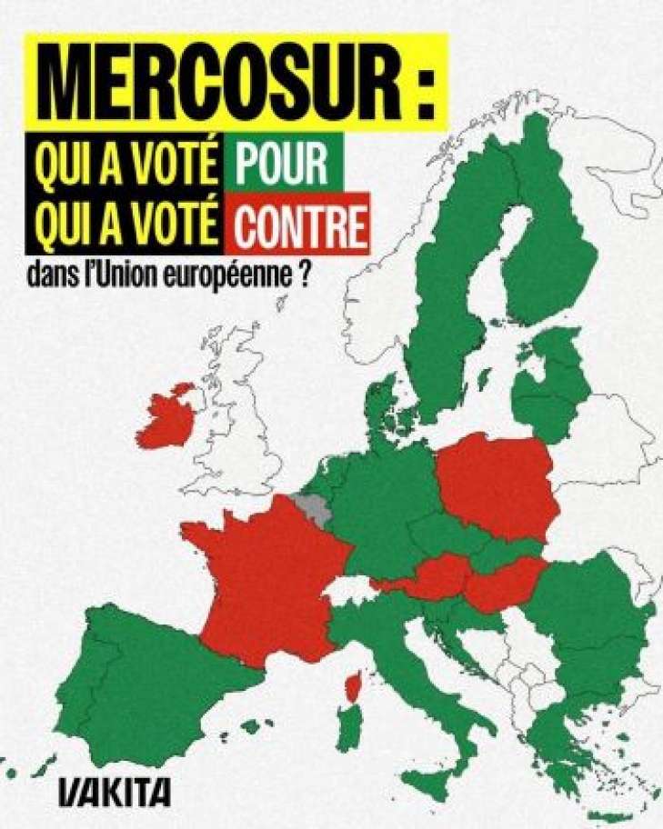 Зеленим виділено ті країни, які проголосували за Меркосур. Червоним - проти.