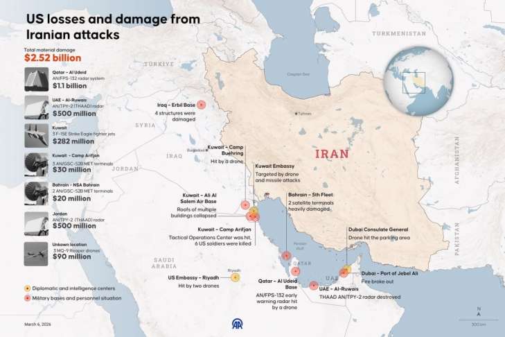 Іран також намагається бити по об'єктах ППО на території всього близькосхідного регіону. Тегерану вдалося вразити комплекс THAAD в ОАЕ та Йорданії, вартість ремонту або заміни пошкодженого обладнання оцінили в $500 млн. Загалом, за даними до 4 березня, з початку війни з Іраном США втратили військову техніку на $2 млрд.