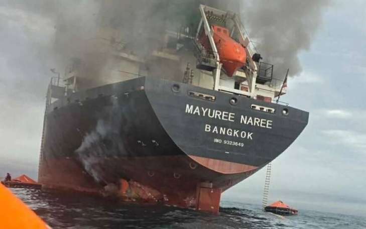 Still images released by the Thai Navy show the “Mayuree Naree” cargo ship engulfed in thick black smoke after being targeted in the Strait of Hormuz. pic.twitter.com/YXvQ2LRKiw