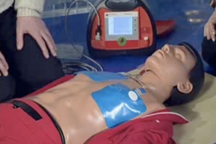 Мужчина рухнул на пол. У него не было пульса и остановилось дыхание. При помощи дефибриллятора медсестре удалось возобновить сердцебиение.