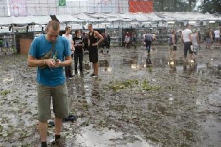 Ураганный ветер, сопровождавшийся ливнем и градом, привел к обрушению конструкций двух сцен и гигантских экранов. Одна из сцен упала на зрителей.