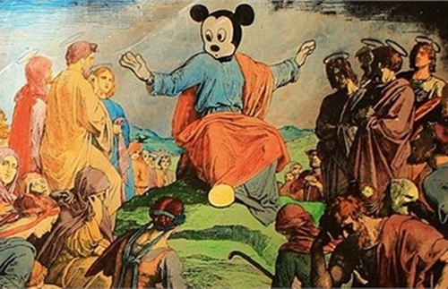 Картина художника Александра Савко «Нагорная проповедь» из серии «Путешествия Микки Мауса по истории искусства» была представлена на выставке «Запретное искусство – 2006». Савко заменил на гравюре Юлиуса Шнорр фон Карольсфельда голову Христа на голову Микки Мауса, передает Газета.ру.