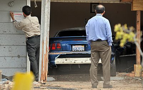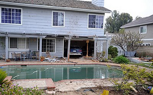 В результате Saleen Mustang пробил кирпичный забор, каким-то чудом перелетел через плавательный бассейн во дворе и приземлился прямо в комнате соседского дома. Можно представить, как они удивились такой «парковке».