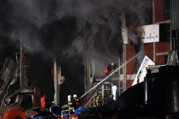 От взрыва загорелись стоявшие поблизости автомобили и муниципальный пассажирский автобус.