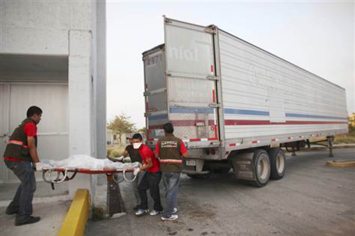 Большинство трупов были обнаружены в двух грузовиках, припаркованных у торгового центра. Некоторые тела преступники выбросили из машин на тротуар. На них есть следы пыток.