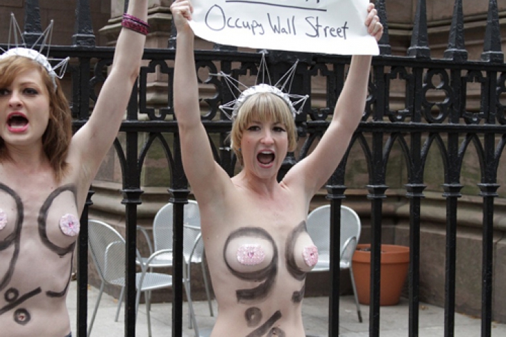 Как сообщили 18 ноября «Багнету» в движении «FEMEN», американские активистки FEMEN появились на оцепленной полицией улице в 9 часов утра и оккупировали Уолл-Стрит своим топлес-протестом.
