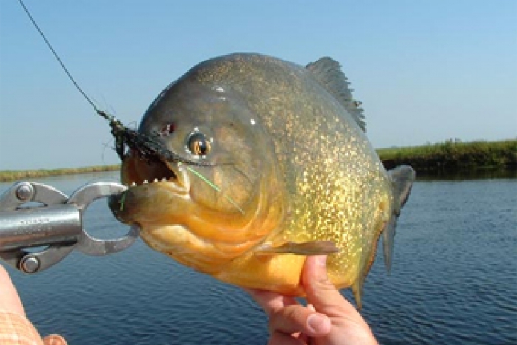 Рыбак с многолетним стажем продемонстрировал репортерам крупные зубы хищника, а также с легкостью сделал пропил в деревянной доске прочным плавником пираньи.