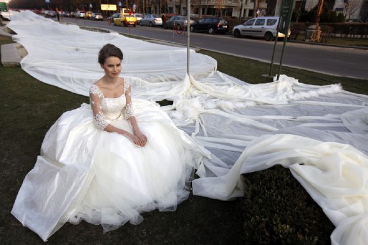 Над Бухарестом развевался 3-километровый шлейф свадебного платья (ФОТО)