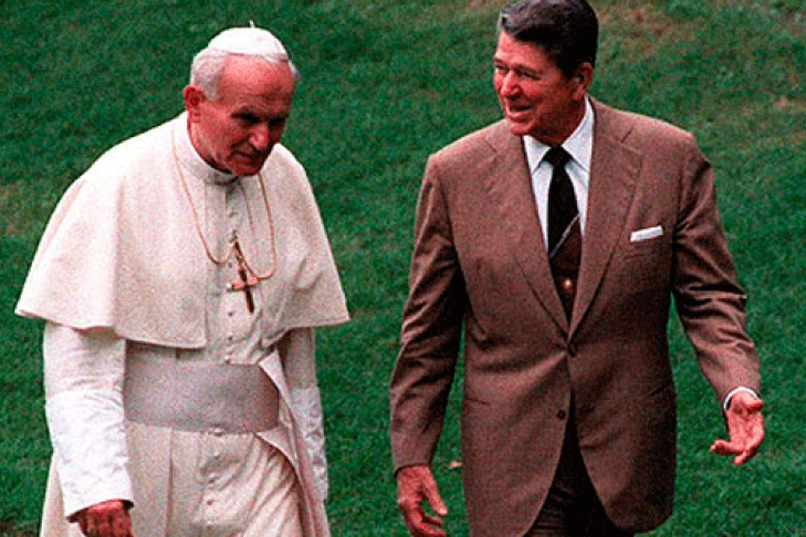 Памятник Папе Римскому Иоанну Павлу II и президенту США Рональду Рейгану открыт в одном из парков Гданьска, города на севере Польши. Бронзовая композиция, как сообщают украинские СМИ, создана на основании фотографии агентства Associated Press 1987 года, на которой изображены два лидера на прогулке в Майами (штат Флорида). Та встреча была второй, первая случилась за пять лет до этого, в Ватикане.