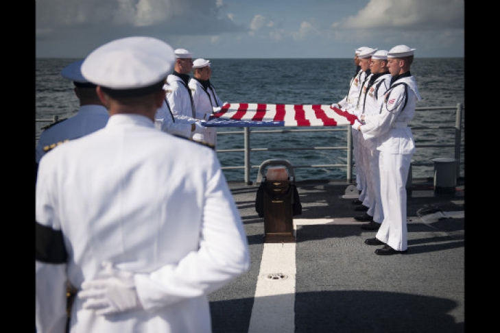 Так, сообщается, что церемония прощания с прахом легендарного космонавта произошла на борту одного из военных кораблей ВМФ США в Атлантическом океане. В присутствии его жены, родственников и друзей, а также высшего руководства США останки кремированного тела Армстронга были развеяны над океаном.