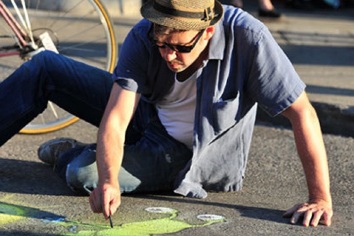 Художник-самоучка и просто необычайно творческий человек Дэвид Зинн (David Zinn), проживающий в штате Мичиган, с 2008 года украшает улочки своего города Энн-Арбор трехмерными изображениями веселого зеленого создания по имени Слагго (Sluggo).