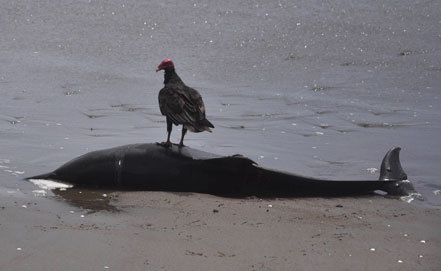 Спасатели предполагают, что в субботу вечером 13 дельфинов-афалин выбросились на берег острова Кинга, а на следующий день на песчаный пляж расположенного рядом крошечного острова Новогодний выбросились сразу 80 дельфинов - афалин и гринд.