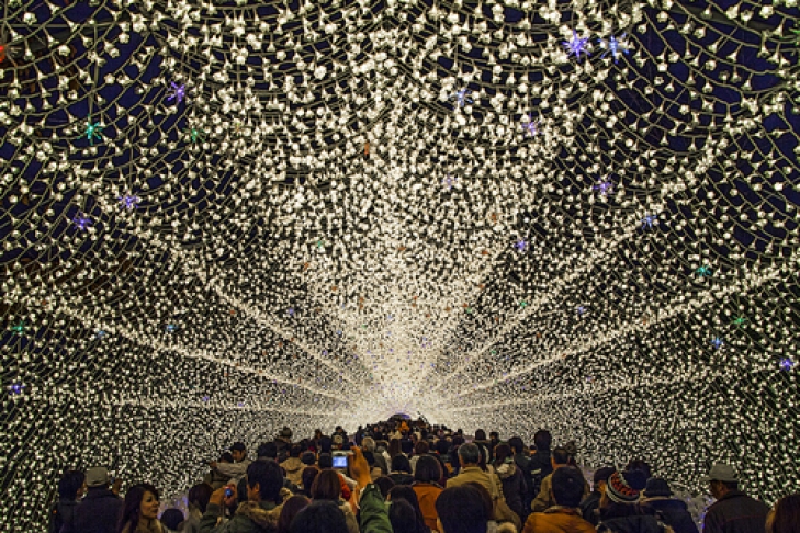 Но главной достопримечательностью японского ботанического сада является зимнее освещение. Каждый год, с середины ноября по середину марта, всю территорию парка, включая воду, оформляют светодиодными лампочками. Тема и масштаб световой инсталляции каждый год разные. В 2012 организаторы, кажется, превзошли самих себя. Это лучшее зимнее световое шоу во всей Японии.