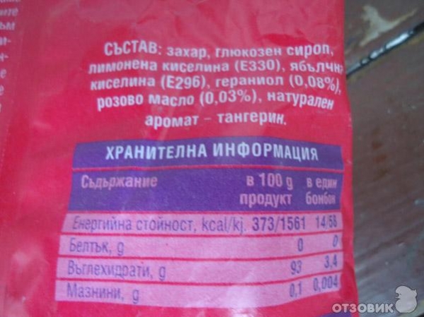 В основе сладости находится гераниол, который выходит в атмосферу через поры в коже человека, заставляя его благоухать. Конфета не содержит сахара и даёт возможность любому человеку источать аромат диких роз.