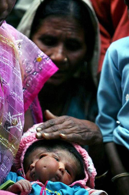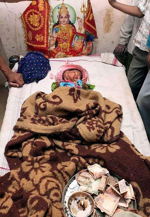 Все паломники хотят посмотреть на чудо – двуликую малышку. Индусы уверены, что четырехглазое создание – живое воплощение божества, сообщает «Ура-Информ».