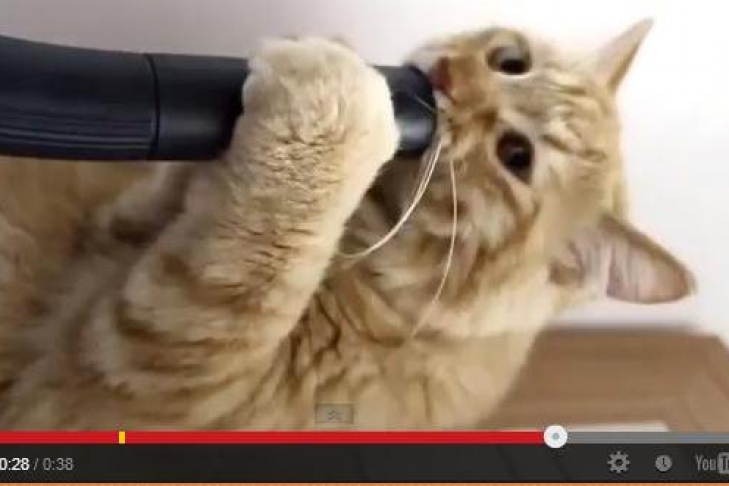 Домашние питомцы продолжают удивлять и смешить людей своими поступками, не прилагая при этом никаких усилий. Так, в то время, когда большинство кошек боятся пылесосов, этот рыжий кот с удовольствием засовывает мордочку в шланг и получает от этого неподдельное удовольствие. Отметим, этот ролик в Интернете уже просмотрели почти 5 млн пользователей.