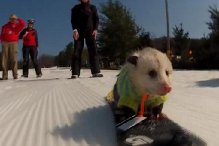 Забавный опоссум-сноубордист покоряет Альпы (ВИДЕО)