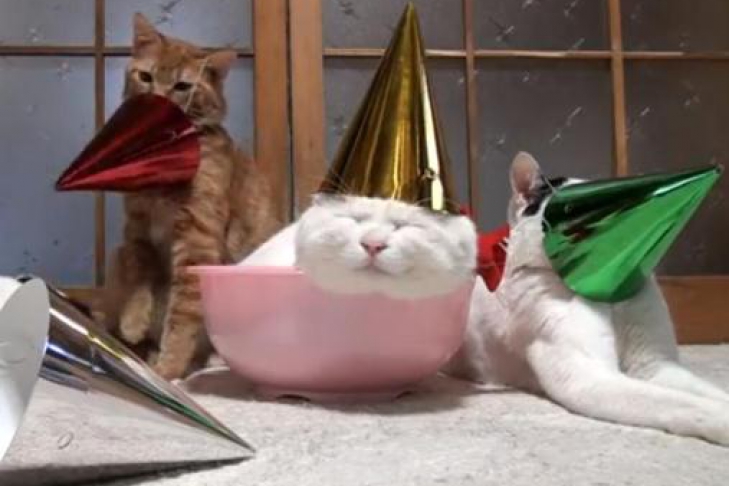 Люди неустанно продолжают проводить эксперименты над своими домашними животными. Американка Джейн Ривз решила устроить для своих любимых кошек общий день рождения и угостила их шампанским, нарядив после этого в праздничный головной убор. В чем состояла шутка, коты, судя всего, так и не поняли.