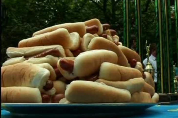 В Нью-Йорке сегодня не только празднуют 4 июля - день независимости США, но и проводят традиционные американские соревнования - чемпионат мира по поеданию хот-догов. Накануне там собрались лучшие едоки со всей страны, в том числе титулованные чемпионы. Условия соревнований очевидны - нужно съесть как можно больше булочек с сосисками как можно быстрее. Интересно, что женщины и мужчины в этом виде гастрономического спорта соревнуются в разных категориях.