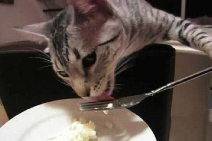 Домашний кот научился кушать вилкой (ВИДЕО)