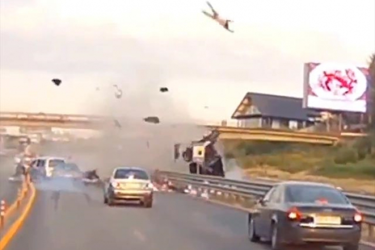 После ДТП водитель взлетел вверх на 20 метров (ВИДЕО)