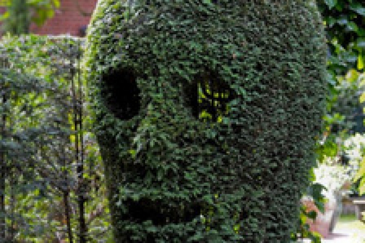 Житель города Уэлин-Гарден-Сити превратил свой дом в настоящий парк ужасов. На фасаде коттеджа он выстриг из плюща гигантские руки, будто обнимающие здание. Во дворе у врача красуется натуральный во всех смыслах этого слова зеленый череп – его главная гордость и достижение.