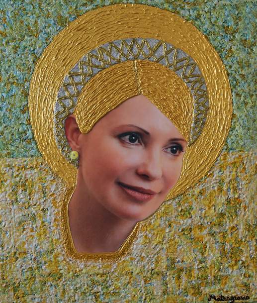 В Европе Юли Тимошенко действительно популярна. Это подтвердил еще один факт: на аукционе eBay выставлен лот – изображение украинского экс-премьера с золотым нимбом. «Современная икона Юлия Тимошенко», - подписан лот, и его стартовая цена – 100 тысяч евро. Выполнена в смешанной технике – коллаж на холсте.