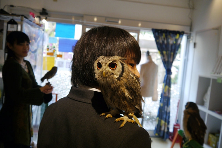 Но недавно в Японии появилось подобное кафе, только вместо кошек посетители могут полюбоваться совами, оно так и называется — «Совиное кафе».