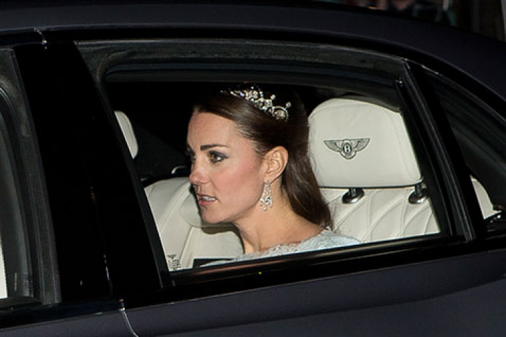 На мероприятиях такого масштаба действует очень строгий формальный дресс-код white tie, который предписывает дамам надевать дорогие украшения и тиары. Своей короны у Кэтрин пока нет, поэтому молодой матери приходится одалживать этот аксессуар у родственниц мужа. На этот раз герцогиню выручила королева Елизавета II, предоставив ей роскошную тиару своей покойной сестры Маргарет.