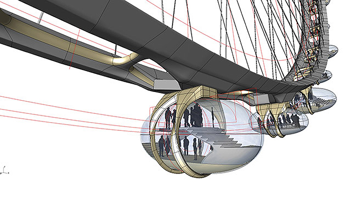 Сооружение будет состоять из пятиколонного пилона, удерживающего конструкцию из 32 однопалубных и двухпалубных кабин, совершающих полный оборот за 40 минут.