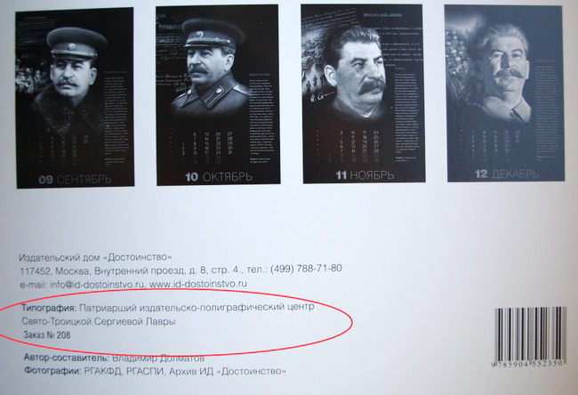 Патриарший издательско-полиграфический центр Свято-Троицкой Сергеевой Лавры (Москва) напечатал биографический календарь на 2014 год: «СТАЛИН»