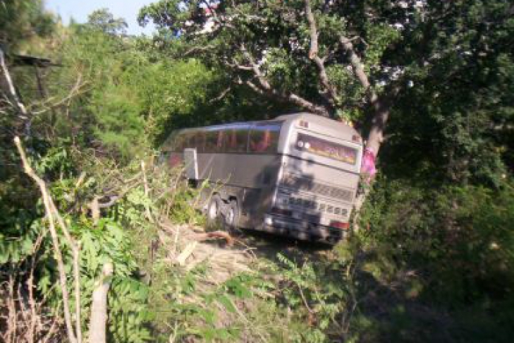 Автобус, в котором находились десять пассажиров, съехал с трассы.