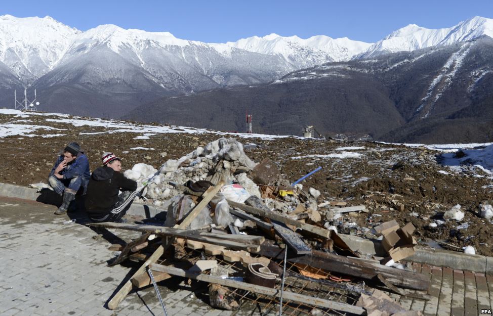 Строительный мусор перед медиа-деревней в Красной Поляне